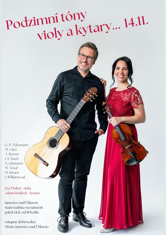 Koncert ve staré radnici: Eva Mokrá - viola, Adam Pavlíček - kytara. Vstupné je dobrovolné
